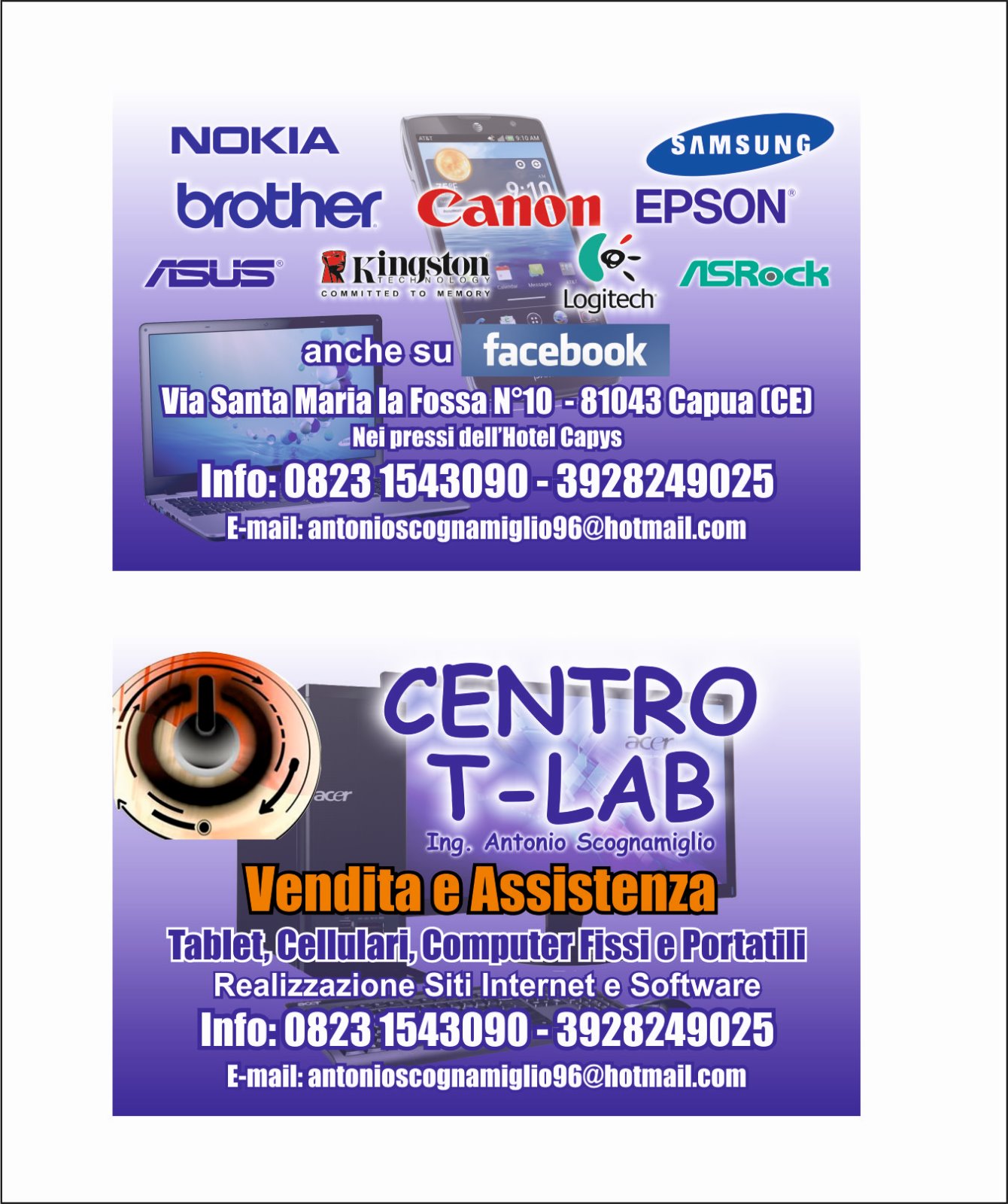 Situato a Capua, in provincia di Caserta, il Centro T- Lab si occupa di riparazioni professionali a computer fissi e portatili, tablet, telefoni eseguite da tecnici qualificati che in tempi rapidi saprà offrire la migliore risposta ai problemi dell’utenza.