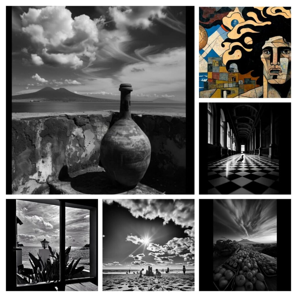 È la fotografia che tira fuori tutto il suo essere artista, tutte le emozioni del chiaroscuro, del bianco e nero che racconta la vita e le suggestioni dei ritratti di gente comune e delle immagini del repertorio iconografico, storico e folcloristico napoletano: da Ferdinando “re nasone” a Maradona, dalla regina Margherita al Vesuvio, cercando di trasmettere ciò che avverte, la sensazione dell’attimo, perché come dice lui stesso bisogna “fotografare ciò che senti, non ciò che vedi”.