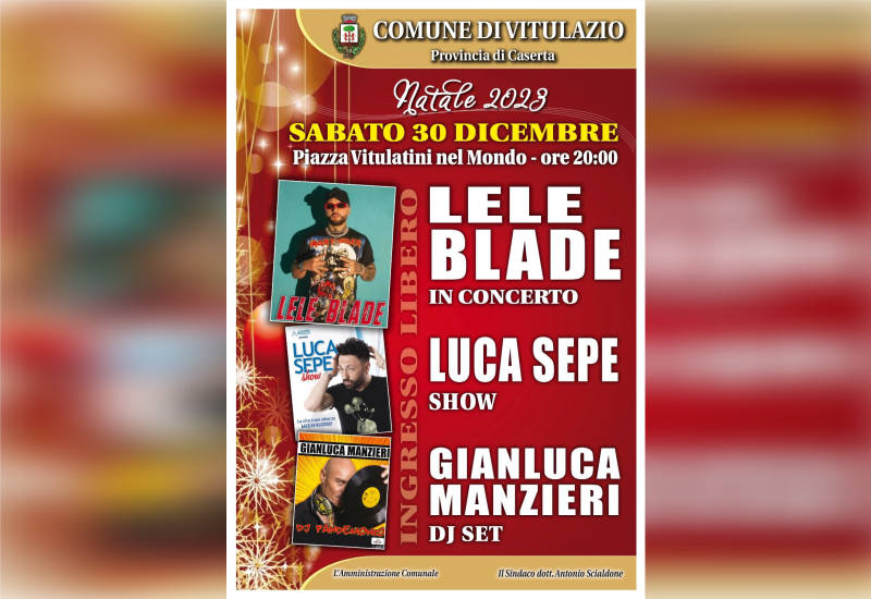 Al programma di eventi natalizi hanno lavorato alacremente il vice sindaco Melania Russo e l’assessore agli eventi Giusy Magliocca. Sabato 30 dicembre attesi Dj Set di Gianluca Manzieri, Luca Sepe Show, Tik Toker Rafael o Pazz ed il “Gran Concerto di Lele Blade”.